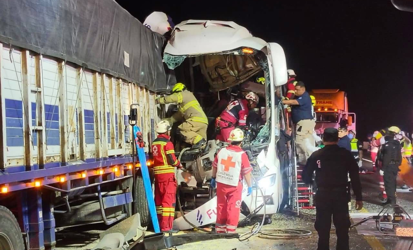 Un accidente carretero registrado durante la madrugada de este sábado en el municipio de Güémez dejó un saldo de 35 personas lesionadas y dos fallecidas, luego del choque entre un autobús de pasajeros y un vehículo de transporte pesado.