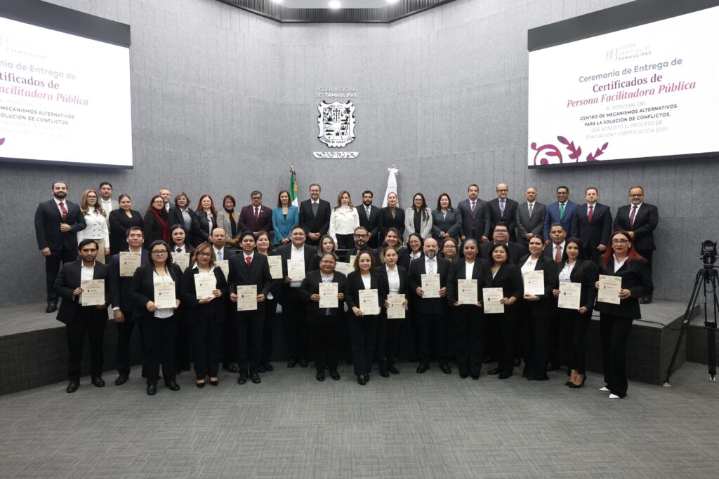El Poder Judicial de Tamaulipas informó que se convirtió en el primer estado del país en cumplir de manera integral con las certificaciones establecidas en la Ley General de Mecanismos Alternos de Solución de Controversias y en los lineamientos emitidos por el Consejo Nacional en la materia.