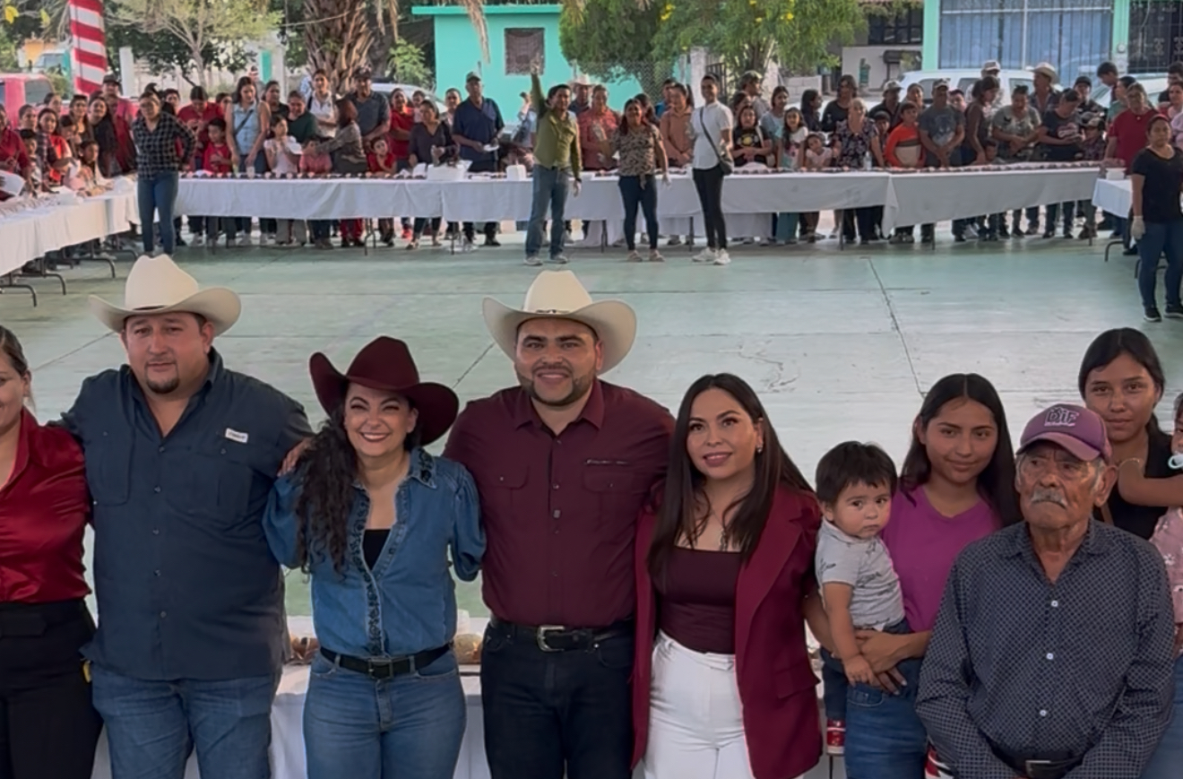 Entre sonrisas, juegos y un ambiente completamente familiar, el alcalde Beto Hinojosa encabezó este día la partida monumental de la Rosca de Reyes, evento que convirtió la techumbre de la cabecera municipal en un punto de encuentro para cientos de familias casenses.