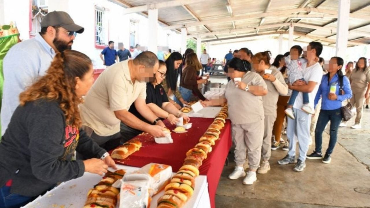 El Centro de Ejecución de Sanciones (CEDES) de Ciudad Victoria celebró el Día de Reyes con una rosca artesanal de 20 metros de longitud.
