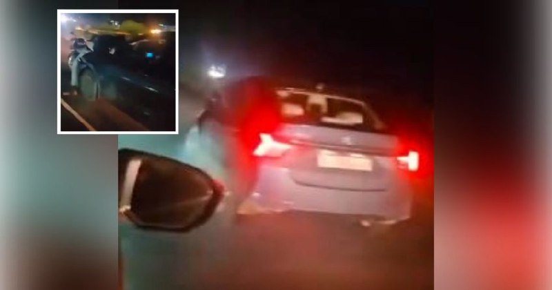 Durante el incidente, el motociclista cayó del auto y fue parcialmente arrollado antes de quedar tendido en la vía, según imágenes captadas por testigos.