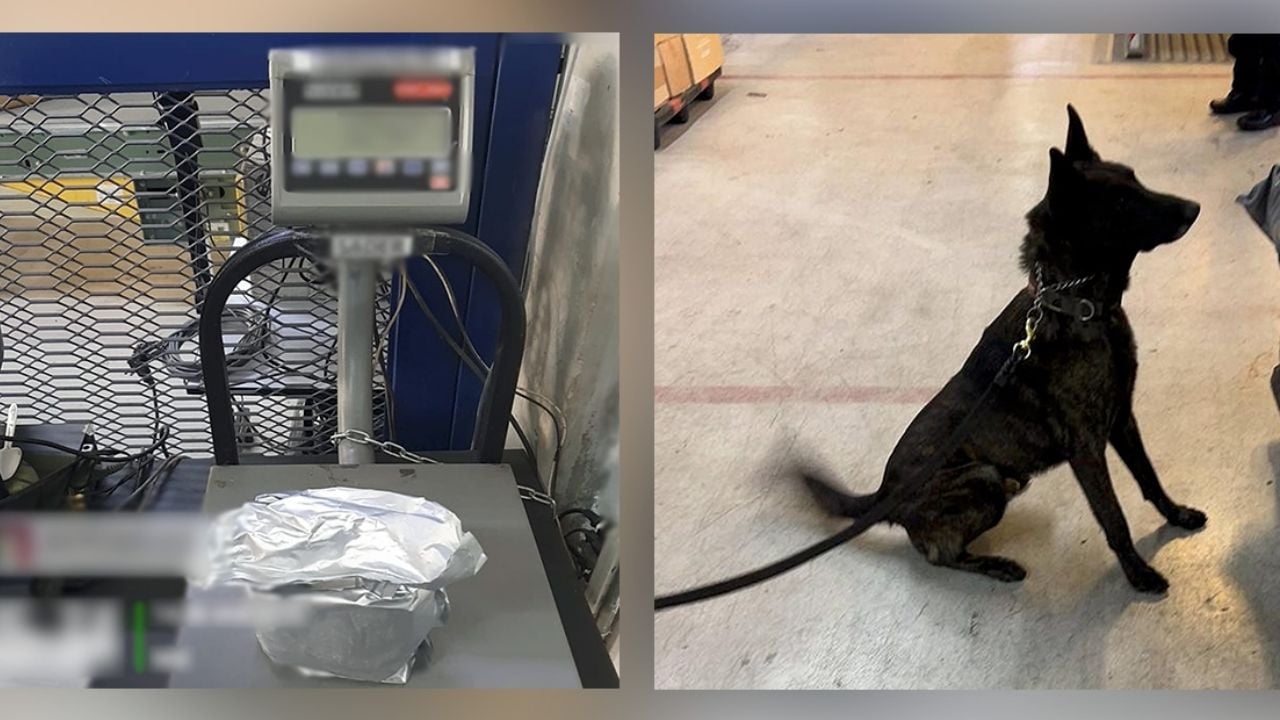 El paquete, que provenía de Asia y pesaba cerca de un kilogramo, fue inspeccionado por personal de aduanas y fuerzas del orden tras una revisión de rayos X y la intervención de un perro policía llamado Néstor.