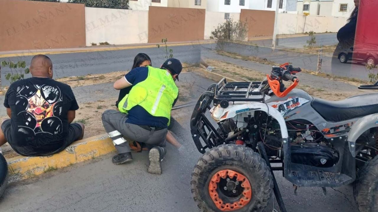 Un nuevo accidente en cuatrimoto se registró en la colonia Bosques del Sur, al sur de Nuevo Laredo, cuando un padre y su hija derraparon al perder el control del vehículo.