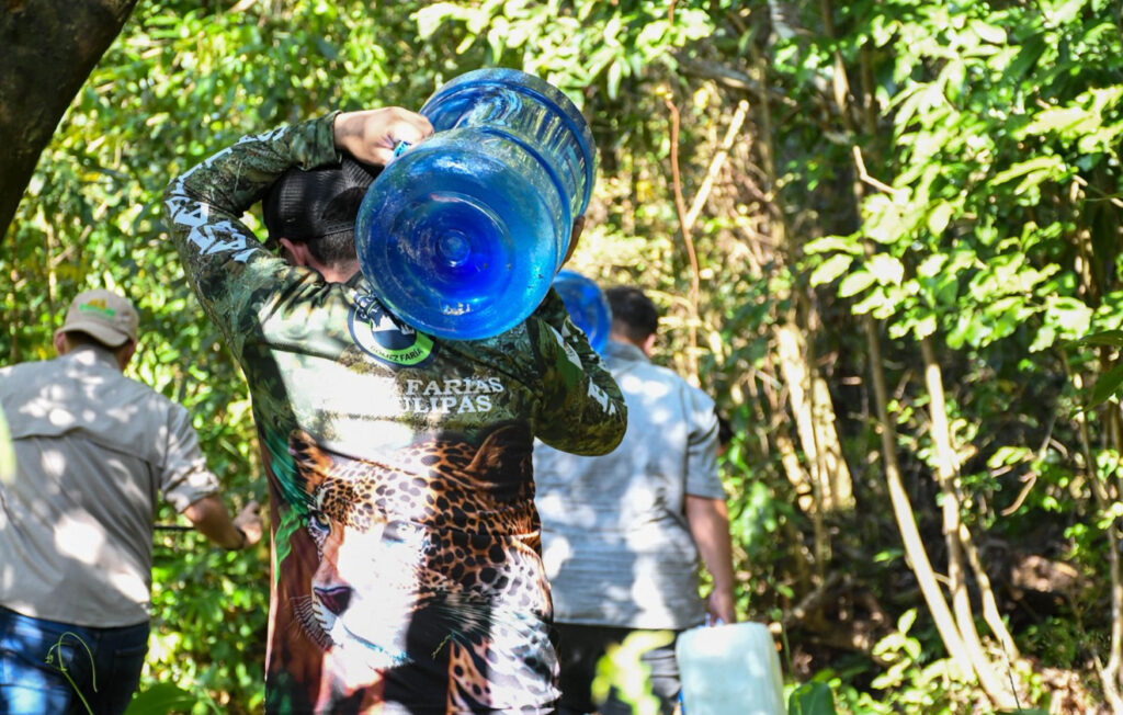 Como parte de estos trabajos, personal técnico de la dependencia, acompañado por personal del Parque Ecológico Biósfera El Cielo, realizó recorridos en el municipio de Gómez Farías para supervisar y abastecer bebederos estratégicamente instalados en zonas de tránsito de especies.
