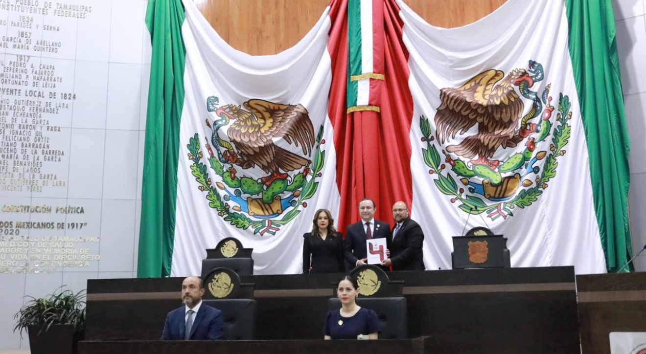 “Por instrucciones del gobernador Américo Villarreal Anaya, gobernador constitucional del estado de Tamaulipas, y en cumplimiento de lo establecido en los artículos 44 y 91, fracción XXIII, y demás relativos de la Constitución Política local, acudo ante esta soberanía a hacer entrega del Cuarto Informe del estado que guarda la administración pública estatal”, expresó.